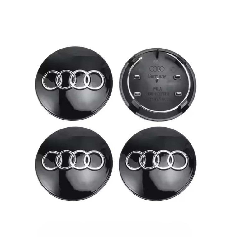Restore your Audi’s signature look with our 4pcs 68mm / 57mm wheel center hub caps, the essential replacement for Part Number 8D0601170. This is the definitive "Classic" Audi center cap, featuring a high-gloss black face and the iconic 3D polished chrome four-ring logo. These are complete hub cap assemblies—not stickers—engineered to replace lost or faded factory units. With a 68mm face diameter and a 57mm inner clip measurement, they provide a universal, secure fit for a vast range of Audi OEM alloy wheels. Constructed from high-impact, automotive-grade ABS plastic, each cap is built to resist road salt, UV radiation, and high-pressure cleaning. The integrated tension ring on the rear clips ensures a vibration-free, "snap-in" installation. Always verify the 8D0601170 code on the back of your existing caps to guarantee a 100% technical match for your A4, A6, A8, or S-Line rims.