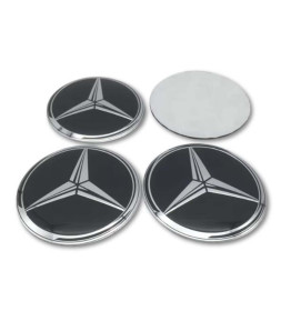 Lot de 4 Étoile Argent Noir Emblèmes Mercedes Benz Stickers Logo Centre Roue Jantes 56-75mm