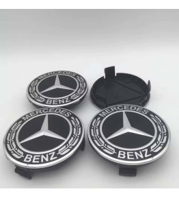 75mm / 70mm Lot de 4 Mercedes Cache-Moyeux - Couronne de Laurier Noire Centres de Roue