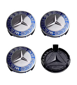 75mm / 70mm Lot de 4 Mercedes Cache-Moyeux - Couronne de Laurier Bleue Classique Centres de Roue
