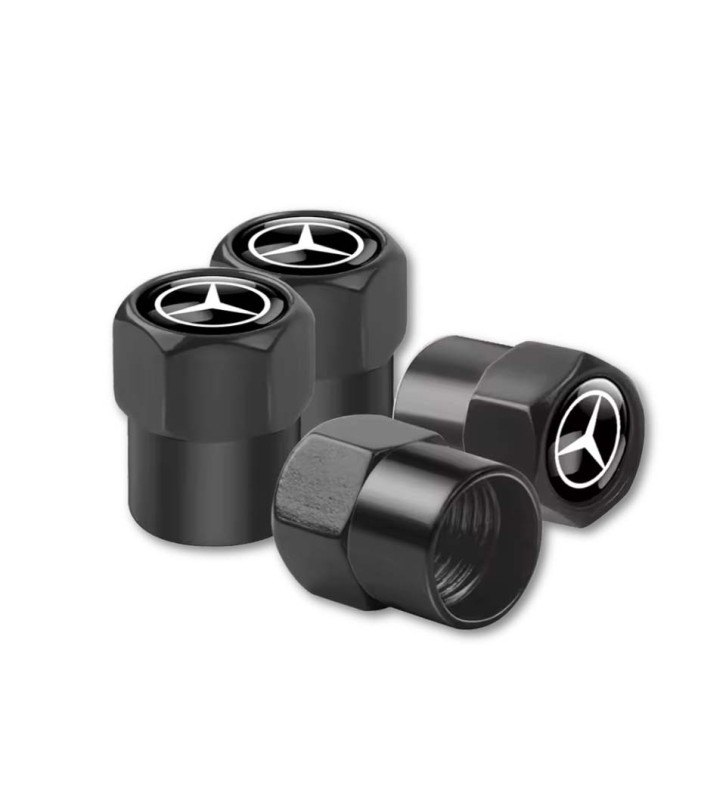 4 Stk. Mercedes-Benz Logo Reifenventilkappen - Schwarz & Silber Staubschutzkappen